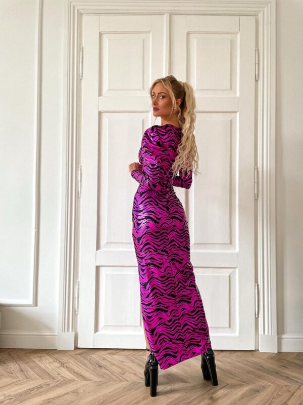 Przylegająca sukienka maxi z wysokiej jakości materiału z holograficznym akcentem.